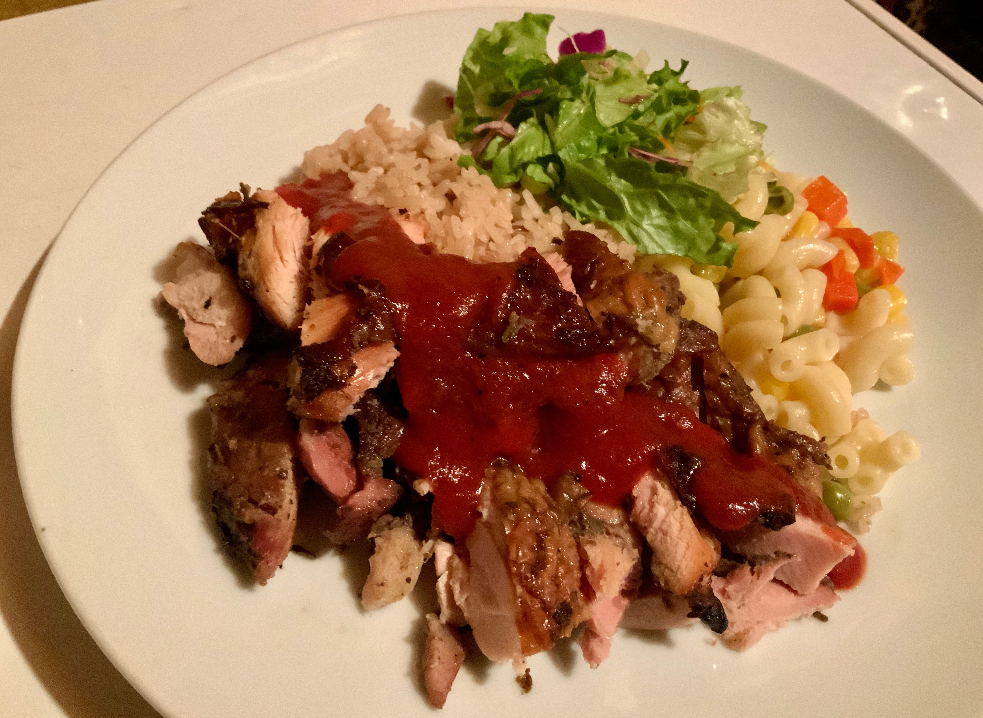 20種類のスパイスと、野菜に漬け込んだ鶏モモ肉を、炭火でじっくり焼き上げた人気No1ジャマイカンフードです。